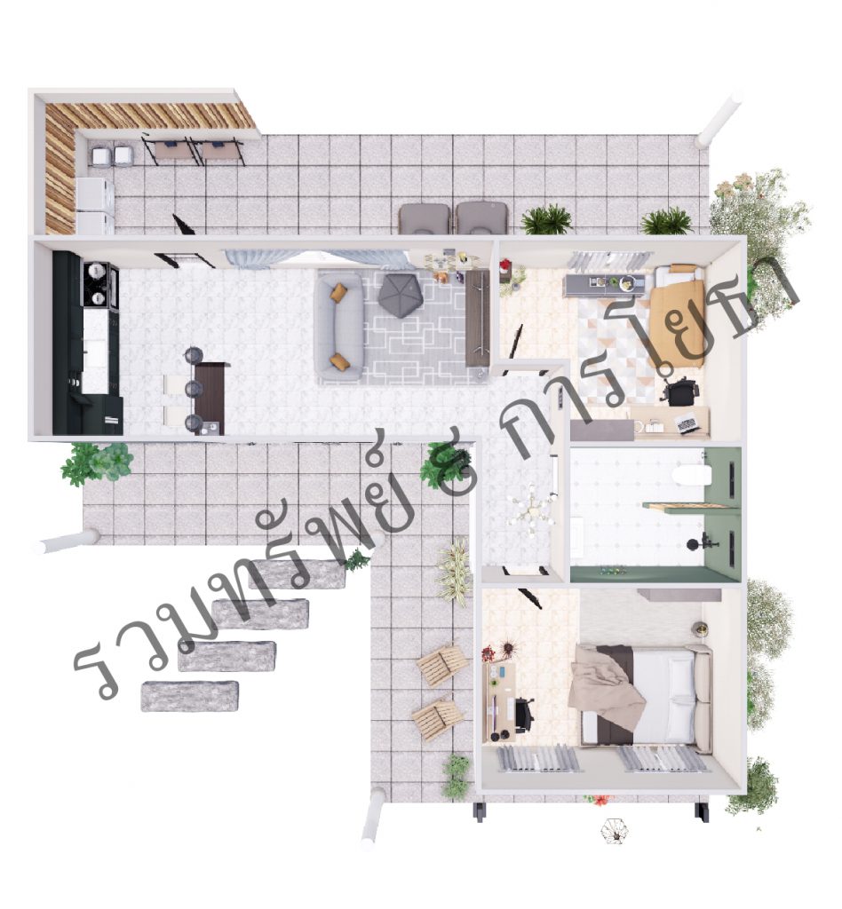 2 ห้องนอน มุมนั่งทำงาน