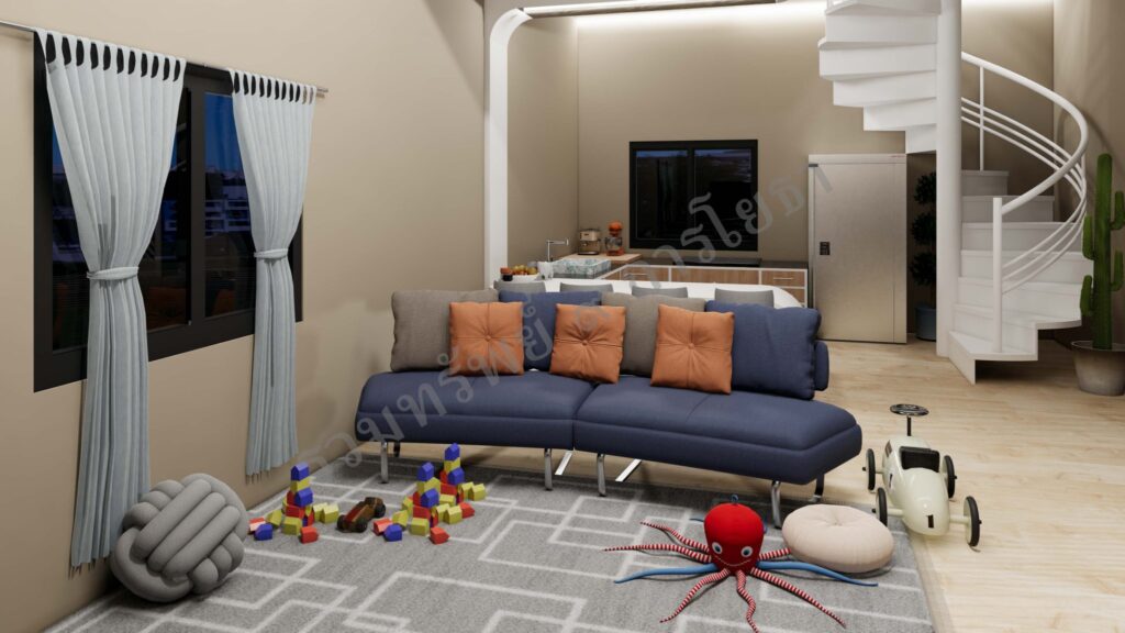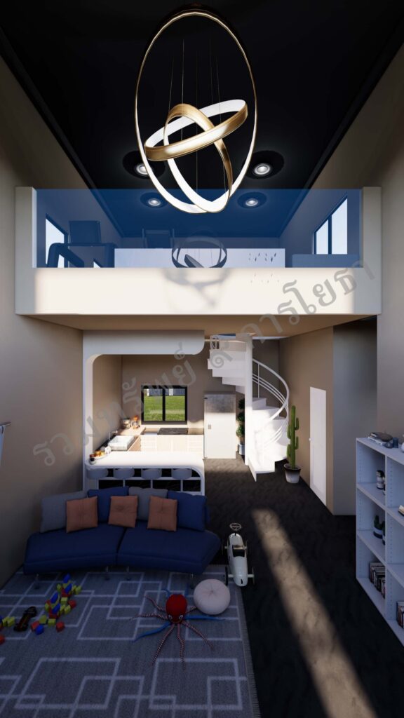 พื้นที่ชั้นลอยออกแบบให้โปร่งโล่ง เพิ่มมิติของการอยู่อาศัย